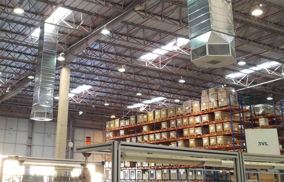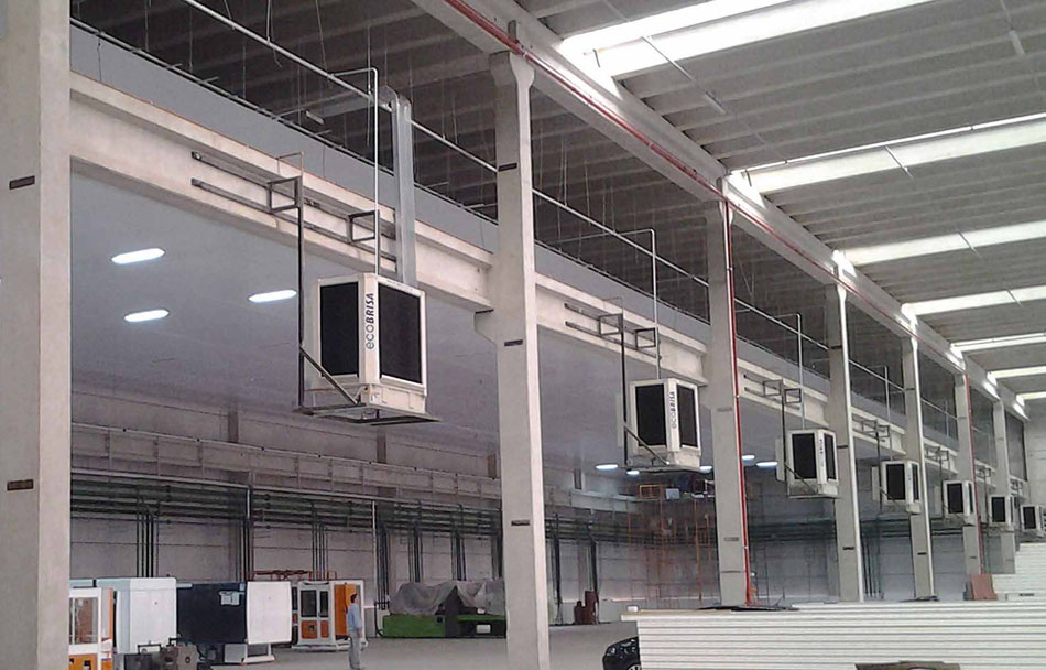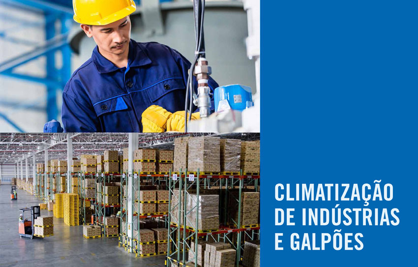 Produtos voltados para indústrias, galpões, warehouses, áreas de armazenamento, espaços de grande, médio e pequeno porte, com necessidade de climatização específica.