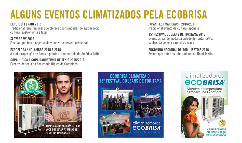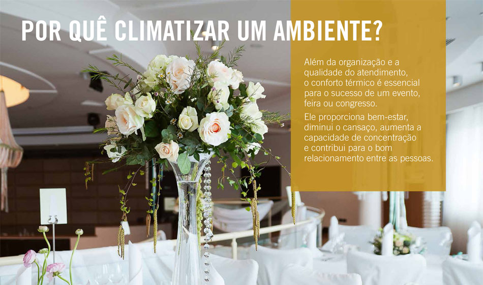 Produtos voltados para a área de eventos, tais como eventos sociais, feiras, congressos, exposições, espaços de grande, médio e pequeno porte, com necessidade de climatização específica.