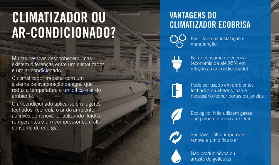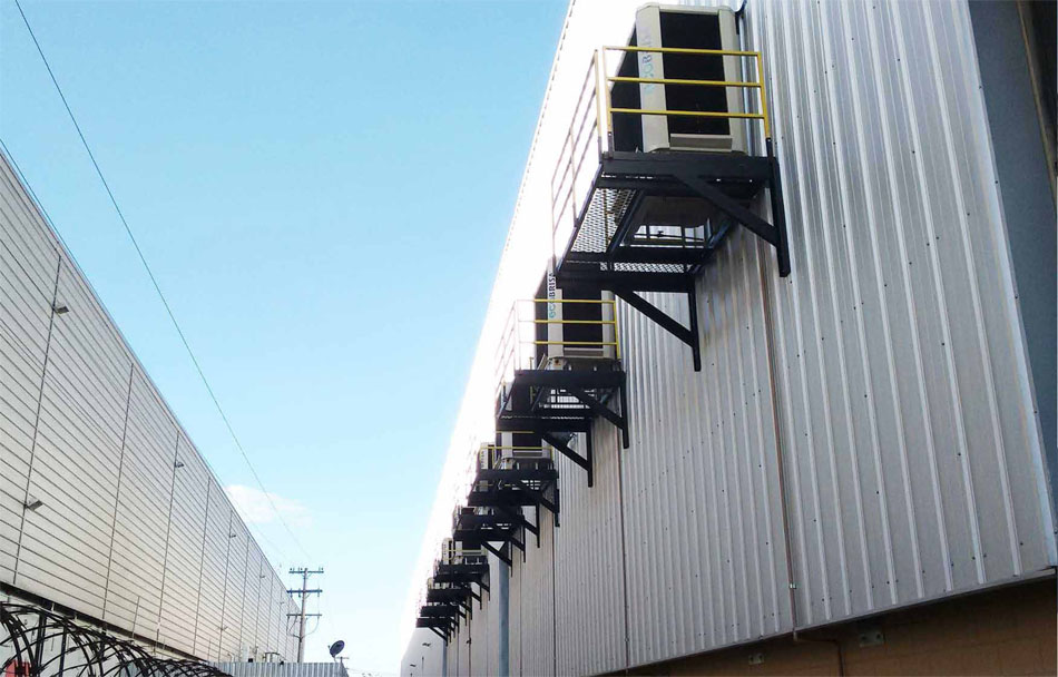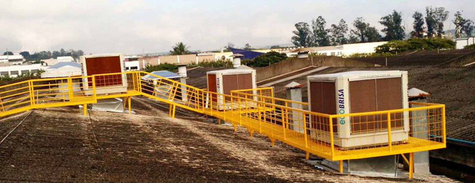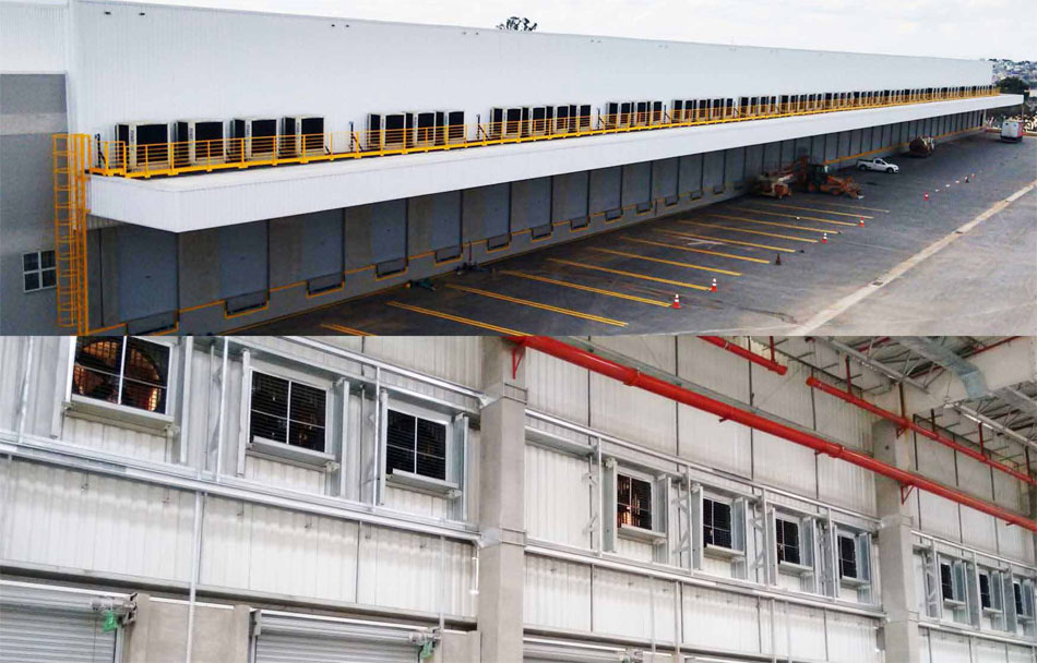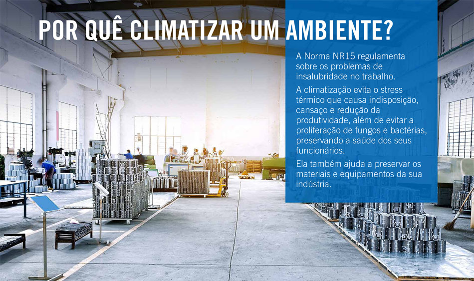 Produtos voltados para indústrias, galpões, warehouses, áreas de armazenamento, espaços de grande, médio e pequeno porte, com necessidade de climatização específica.